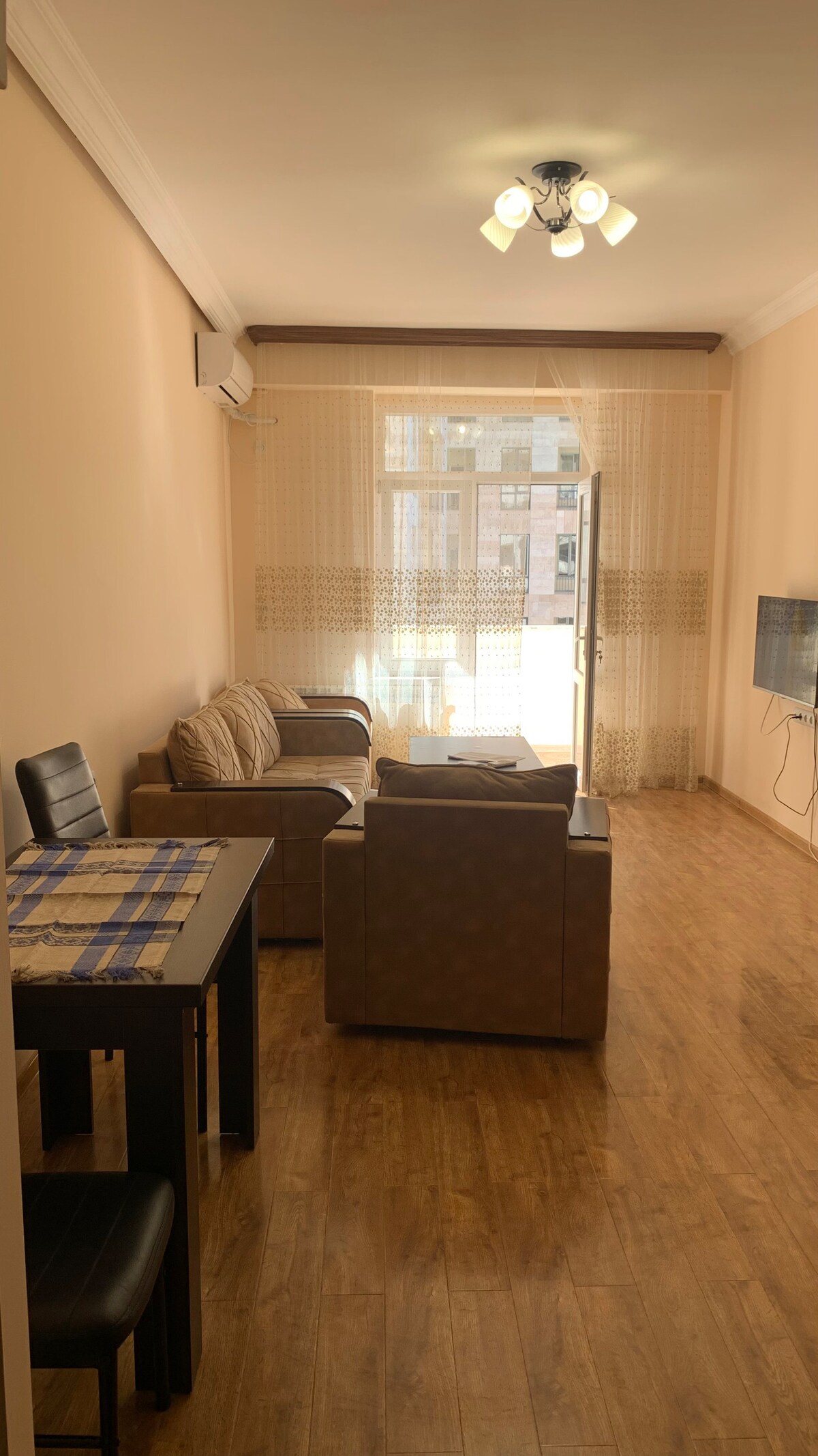 Bu, Yerevanın Mərkəzində çox müasir və rahat mənzildir. Mənzildə soyuq və isti su, kondisioner, televizor, təchiz olunmuş mətbəx, paltaryuyan maşın var. Yenidən qurulub və ona qayğı göstərəcək və mehriban olacaq bütün qonaqları qarşılamağa hazırdır. Mövqe də çox əlverişlidir, təxminən 10 m məsafədə Yerevanın mərkəzində ola bilərsiniz, sadəcə Kaskaddan aşağı enməlisiniz. Qonaqlarımızı qarşılamağı səbirsizliklə gözləyirik və hər kəsin qonaqlamadan zövq alacağına ümid edirik.