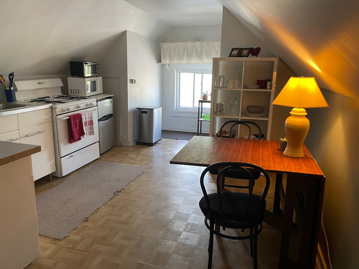 Located in the heart of Uptown, we offer a private, 3rd floor/walk-up, smoke-free studio apartment in a vintage Queen Anne (hosts live on 1st floor; apartment on 2nd). The Aragon Ballroom, Riviera Theater and the legendary Green Mill Jazz club all within a 5-minute walk. Wrigley Field is a 5-minute drive. CTA's Red Line/Lawrence train station is only 1 block away. Parking decals available for guests (for parking overnight on surrounding residential streets).