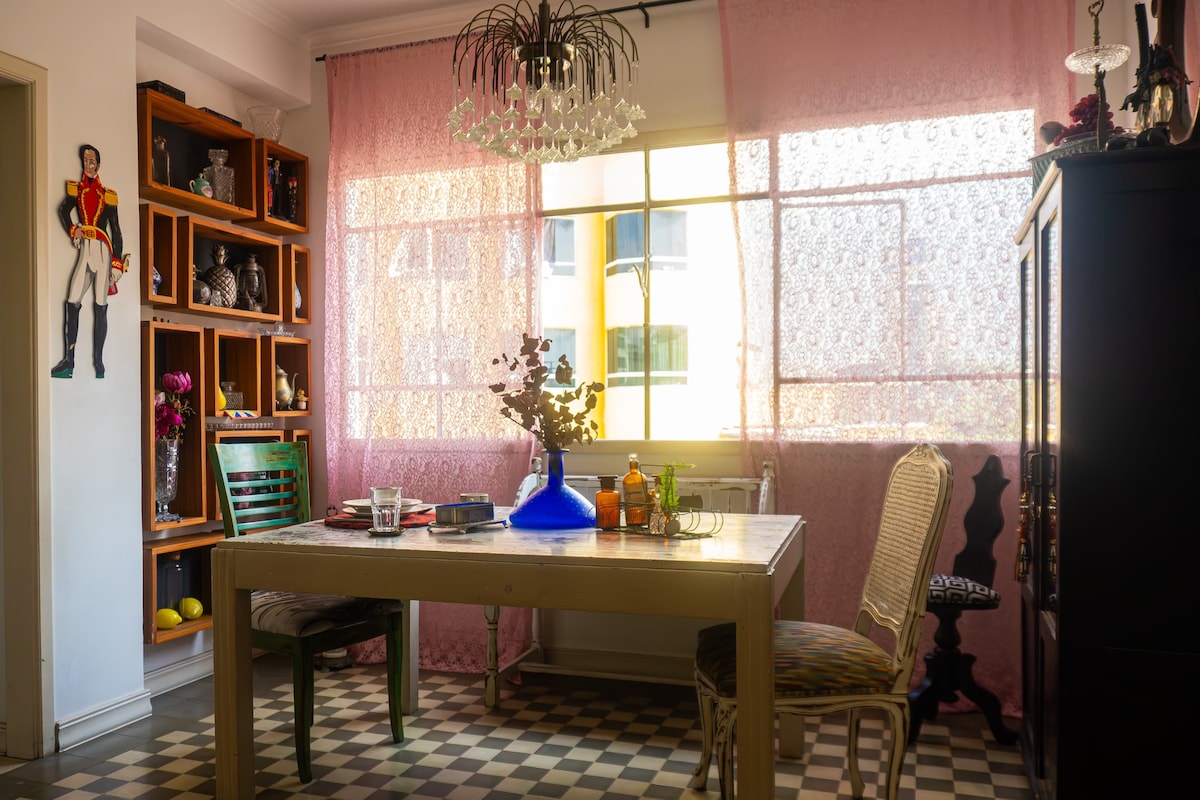 Bu studiya loftda mövqe və rahatlıq birləşir: siz Fransisko de Miranda Prospektindən və San İqnasio Mərkəzindən cəmi iki blok uzaqlıqdasınız, restoranlara, kafelərə və xidmətlərə asanlıqla daxil ola bilərsiniz. Daha çox məxfilik və istirahət üçün tamamilə qaranlıq pərdə ilə bağlaya biləcəyiniz açıq məkan. Tam təchiz olunmuş, qısa və ya uzunmüddətli qonaqlamalar üçün idealdır. -Komfortlu çarpayı - Yüksək sürətli internet - Su problemi yoxdur.