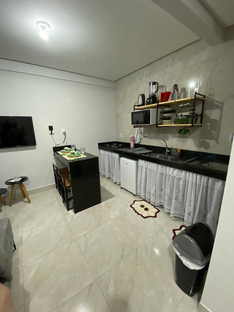 Loftumuz tarixi mərkəzdən 1,5 km məsafədə, Meia Lua prospektinə yaxın və şəlalələrin çıxışından 200 metr məsafədə yerləşir (Rod. dos Pirineus). Burada çarpayı və hamam dəstləri və tam mətbəx olan geniş otaq var. Dondurucu ilə hovuz, istirahət zonası və barbekü olan şərikli istirahət zonası. Loftumuzda keyfiyyətli Wi-Fi ilə əlaqə qurursunuz və Pirenópolisdə dincəlmək üçün rahatlıqdan zövq alırsınız! Gəlin və bu məkandan zövq alın!