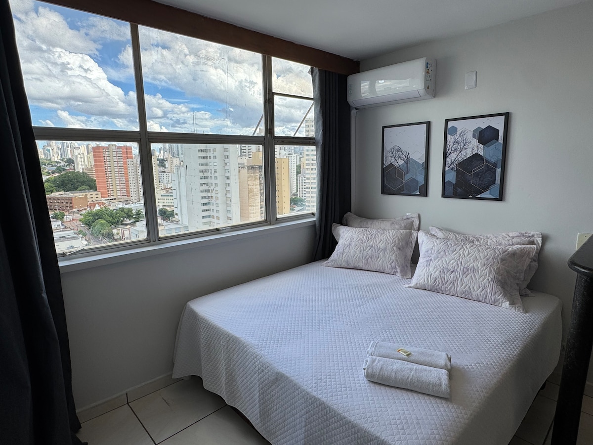 Goiânia, Parque Vaca Brava şəhərinin açıqcasına yaxın olan yeni bina. Goianiyada ən yaxşı istirahət məkanı. Yaxınlıqda Goiânia Shopping, Bretas supermarketi, çörək zavodları və restoranlar kimi digər imkanlar var. Mənzil çox rahat studiyadır, 18000 btus kondisioner, Goiânia istisinə tab gətirmək üçün. O, 8-ci mərtəbədə yerləşir. Mənzildə qonağı qəbul etmək üçün ikinəfərlik çarpayı və 2 nəfərlik divan var. Zirzəmidə qaraj var.