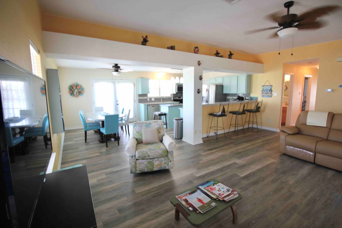 Bu unikal, ailə yönümlü vahədə xatirələr yaradın. Bu istirahət məkanı dəbdəbəli çimərlik istirahəti vəd edir! Upscale yaşayış, bu, sadəcə Port Aransasda ən yaxşı evdir. ~Pulsuz Qolf Səbəti ~ Çimərliyə çox yaxındır ~Ayrıca Qızdırılmış Hovuz (hovuzu qızdırmaq üçün gündə 50 dollar əlavə xərc) ~ Taxta və amor ilə Fire Pit (noyabrdan aprelə qədər) ~Şəhərin sakit hissəsində yerləşir ~ Bütün restoranlara gedin ~ Sonos Soundbar ilə böyük açıq havada televizor ~Çəmənlik oyunları (Cornhole, Mini Golf) ~Açarsız Giriş