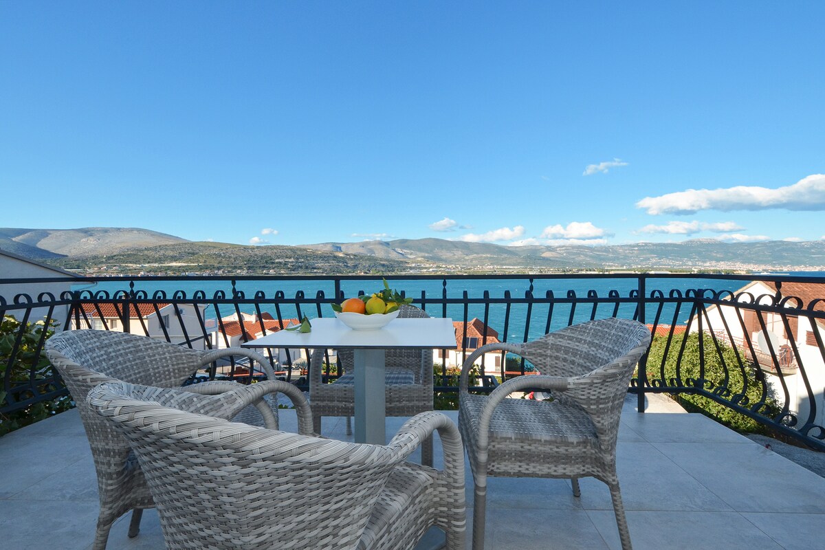Royal is new, modern & luxury renovated apartment with jacuzzi, 50 meters away from beach. Has 50 square meters and 30 square meters terrace. Comes with 2 bedrooms, a living room, a fully eqipped kitchen with a dining area, bathroom with great shower, barbecue facilities, garage(1 car) , flat-screen TV in every room and free wi-fi. Offers a big terrace with open sea view on surrounding islands. Diving can be enjoyed nearbly. Trogir is 5 km away and Split airport 8 km from the acommodation.