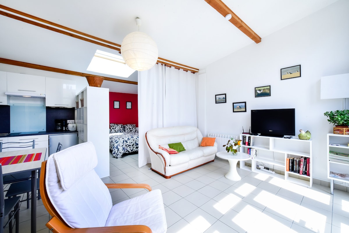 Gəlin və batareyalarınızı gözəl Bassin d 'Arkaçonun mərkəzindəki bu füsunkar mənzildə doldurun. İkinəfərlik çarpayısı (140 sm) və rahat bağ mənzərəli böyük rahat otaqdan, meşəyə açılan işıqlı hamam otağından, yemək sahəsi olan mətbəxdən zövq alın, fransız qapısı sayəsində bayıra açılır. Sizi qarşılamağı səbirsizliklə gözləyirik. Ən yaxşı fəaliyyətləri, restoranları kəşf etmək üçün ipucları istəyirsinizsə, sizə bələdçilik etməkdən məmnun olarıq