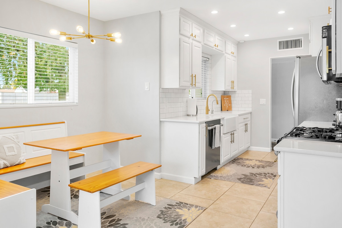 Bu qəşəng B&B-də bağ verandasının yamyaşıl mühitlərinə qərq olarkən üzün. Paylaşılan, qurman mətbəxinə daxil olan kontinental səhər yeməyindən zövq alın, açıq kərpic, böyük şəkil pəncərələri və canlı sənət əsərləri və dekorasiya arasında lüks taxta masada xidmət edin. * Ayrıca hamamı olan yeni ayrıca və müasir yataq otağı. * Xüsusi üzgüçülük hovuzu və yamyaşıl mənzərəsi olan yeni təmir edilmiş 3 otaqlı orta əsrlərə aid ev. * Bu B&B elanı paylaşılan qurman mətbəxində gündəlik qurduğumuz kontinental səhər yeməyi daxildir. Evimiz 1970-ci ildə Phoenix Wrightsian memarı tərəfindən dizayn edilmiş və inşa edilmiş və 2015-ci ildə tam yenidən qurulmuş orta əsrlərə aid müasir əmlakdır. Feniks şəhərini məmnuniyyətlə kəşf edirsinizsə, tədbir üçün səfər edirsinizsə və ya biznesdə şəhərdə vaxt keçirirsinizsə, onun mərkəzi mövqeyi mükəmməl bir şəraitdir. Bu "Bütöv Ev" elanı üçün bütün təsvir olunan bütün məkanlara tam, şərikli giriş imkanı. Evin bir ucunu tuturuq və evin əks tərəfində qonaqlar üçün iki aktiv elanımız var. Bizi onlayn axtarın: #VillaParadisoPhoenix Mətbəx məkanından zövq alın və səhər yeməyinə kömək edin. Sevimli buxarlı qəhvə içkisi, isti çay və kontinental səhər yeməyi (qatıq, şirə, kruassan, meyvə və s.) elanınıza daxildir. Qapalı və açıq havada təsvir edilmiş bütün məkanlardan zövq alın. Otağınız və hamam otağınız kraliça çarpayısı, premium yataq dəstləri, dolab, Wi-Fi, Netflix, masa və s. ilə ayrıca otaqdır. Hamam otağı otaqdan cəmi üç addım məsafədədir və sizin rahatlığınız üçün hamam xalatları təmin edirik. Mətbəx və soyuducu, xüsusi üzgüçülük hovuzu, ön və arxa verandalar və bütün digər yaşayış məkanlarına gedə bilərsiniz. Ön qapı smartfonunuzla aça biləcəyiniz ağıllı kilidlə təchiz edilib. Biz evdə yaşayırıq və qonaqlarımızın seçdiyi qarşılıqlı əlaqədən zövq alırıq. Ev Finiks və Skottsdeyl sərhədində sakit və köklü yaşayış məhəlləsində yerləşir və gecə həyatı, restoranlar, yürüyüş və idman tədbiri yerlərinə getmək məsafəsindədir. Qonaqlamanızın müddətindən və ziyarət etmək istədiyiniz yerlərdən asılı olaraq icarə avtomobili və ya Uber xidməti ən yaxşı seçim ola bilər. Sadəcə bizdən soruşa bilərsiniz. Smartfon naviqasiyası sizi asanlıqla və dəqiqliklə ünvanımıza istiqamətləndirəcək. Hava limanından 10 dəqiqədən az məsafədəyik. Evimiz evsizdir və biz siqaret çəkməyənlərik.