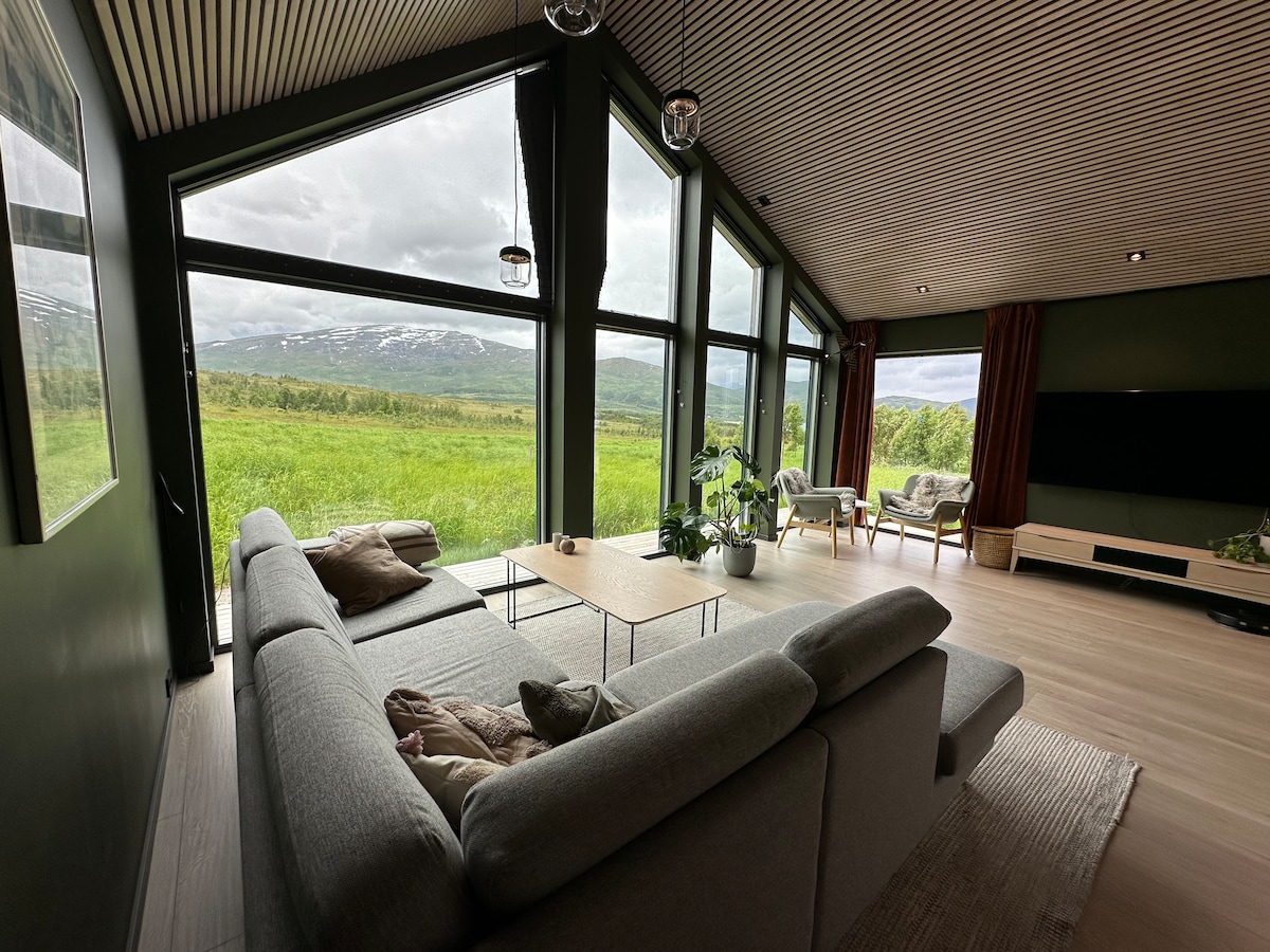 Kvaløya/Tromsøda fyord/dəniz, dağlar və meşəyə gözəl mənzərəsi olan sevimli, sakit bir ərazidə möhtəşəm yeni tikili ev (2018). Gözəl şimal işığını /aurora borealisi böyük pəncərədən (10 kv.m) seyr edə, əlinizdə bir fincan çay və ya qəhvə ilə qonaq otağında oturaraq:-) Bu, şimal işığını, qışda fyordda balinaları görmək, dağlarda yürüyüş/ xizək sürmək və ya bu sevimli şəhərdə istədiyiniz hər şeyi görmək istəyən turistlər üçün mükəmməl bir yerdir.