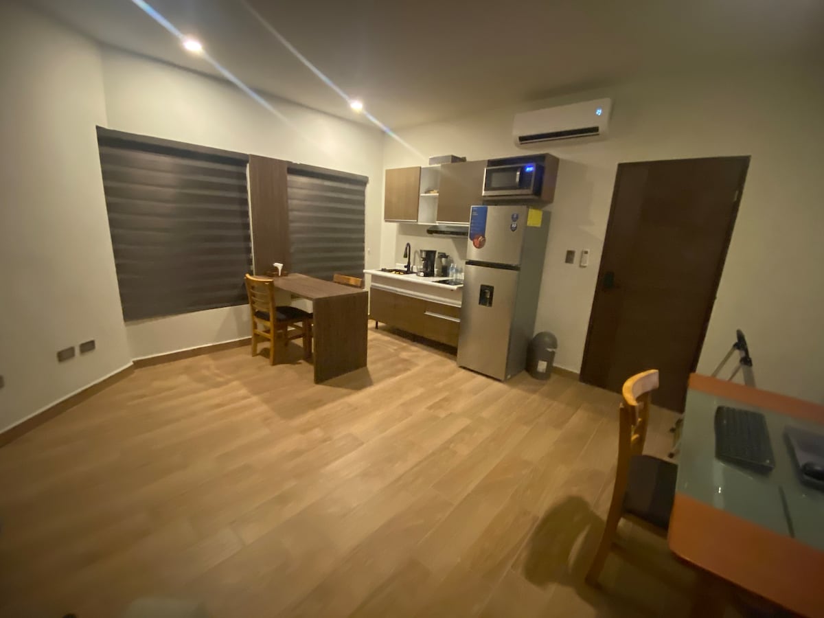 TEC və Monterrey Tarixi Mərkəzindən piyada məsafədə yerləşən mənzil, iki-4 nəfər üçün idealdır, Monterreyin əsas görməli yerlərinə (Muzeylər, Parque Fundidora, Paseo Santa Lucia, Cintermex, Pabellon M, Arena Monterrey) piyada məsafə var. PALNORTE-dən 5 dəqiqədən az. İnternet və xoş qonaqlama üçün lazım olan hər şeylə. Paylaşılan camaşırxana. MÖVCUDLUĞA UYĞUN PARKİNQ MÖVZUSU, BRON ETMƏZDƏN ƏVVƏL SORUŞUN