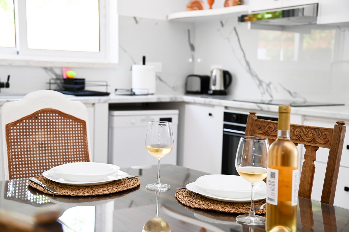 Ayrıca hovuzu və xüsusi parkinqi olan müasir, daşdan tikilmiş villa. Parlaq və havalı, cütlüklər və ailələr üçün mükəmməldir. Müasir interyer dizaynı. Buxarı ilə açıq planlı mətbəx və qonaq otağı. Şam ağacları ilə dolu sakit təpədə, Pomosun əsas küçəsindən200 m və dolğun Cənnət Çimərliyindən 700 m məsafədə yerləşir. Möhtəşəm günəş və dəniz mənzərələri. Dəniz və dağı mükəmməl şəkildə birləşdirir. Üzgüçülük və yürüyüş üçün idealdır. 2017-ci ildə ailəvi yay evi kimi sevgi ilə kiçik gizli ayrıca vahə.