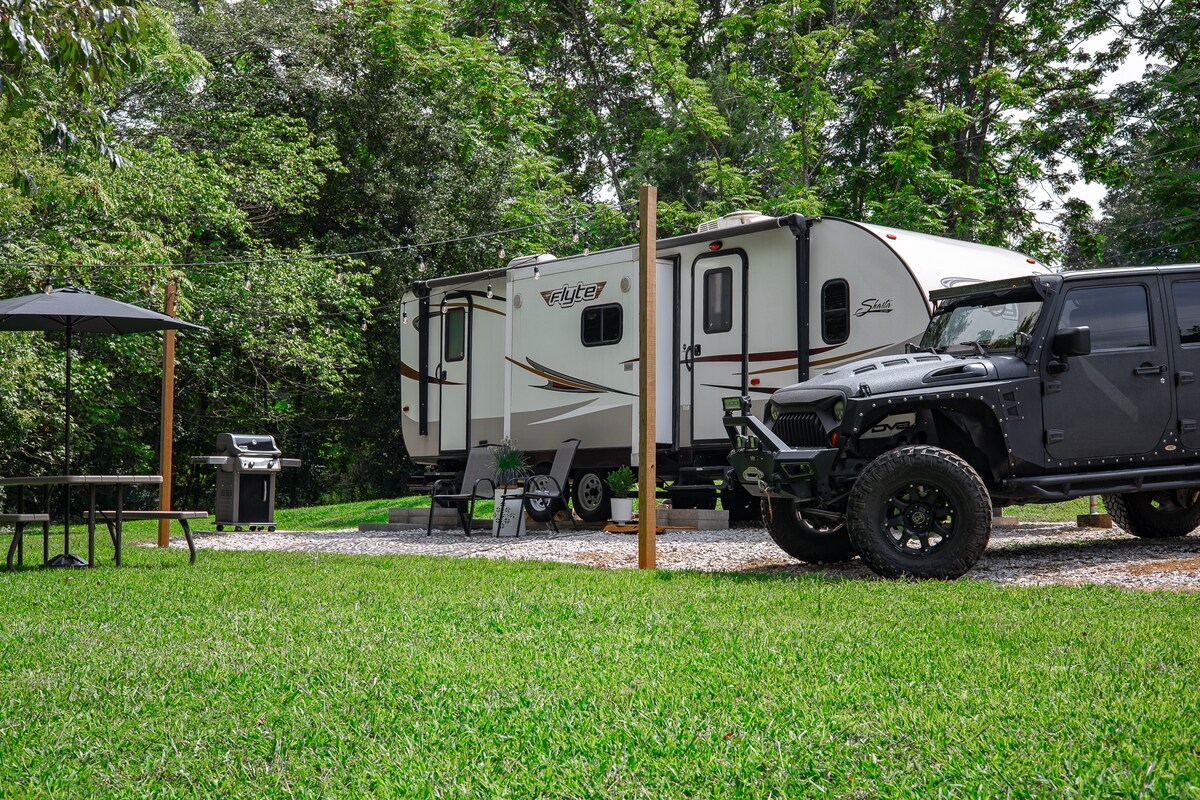 Firepit ilə 25 hektarlıq ərazidə müasir RV Nestled