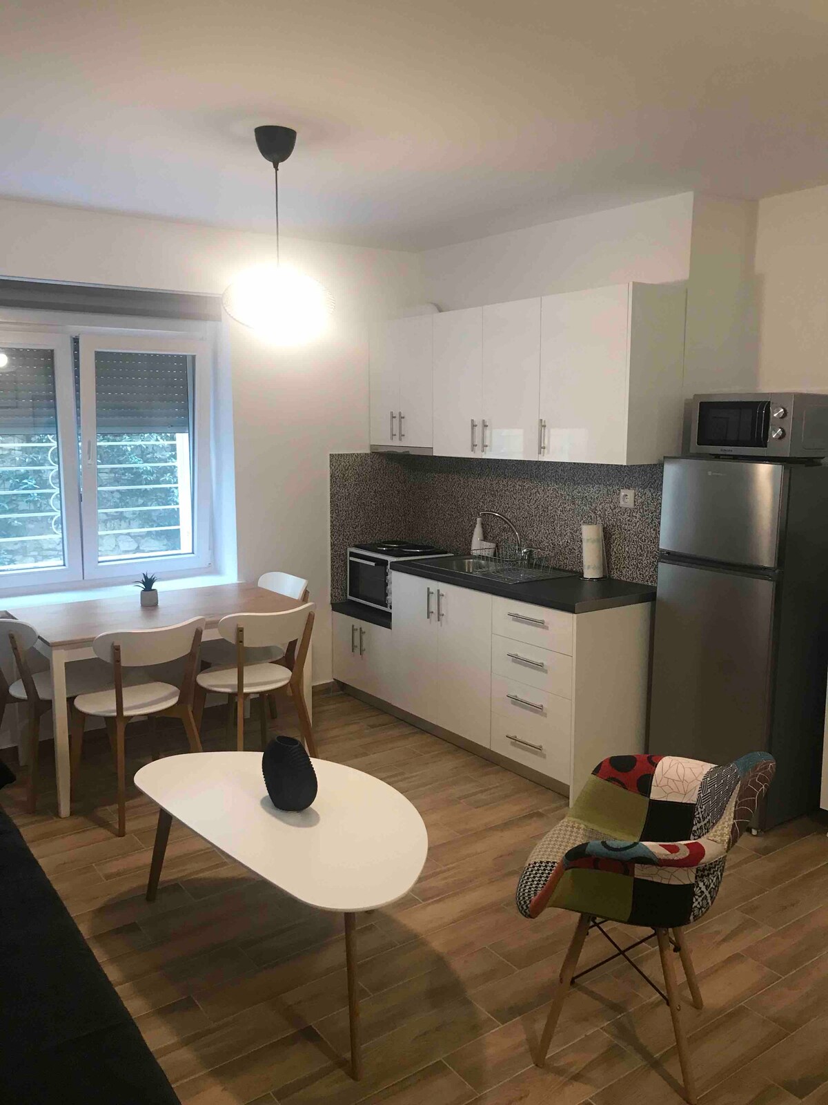 Kalabakanın mərkəzində yerləşən rahat, dəbli və rahat mənzilimizdə qonaqlamanızdan zövq alın! Bu yeni təmir edilmiş məkan bir qrup dost, ailə və ya rahat qonaqlama axtaran cütlüklər üçün idealdır və 6 nəfərə qədər insanı rahatlıqla yerləşdirə bilər. Bura 2 yataq otağı, 1 qonaq otağı, 1 vanna otağı, tam təchiz olunmuş mətbəx və saxlama otağı daxildir və qəhvə və ya yeməyinizdən zövq ala biləcəyiniz sevimli bağımıza birbaşa çıxışı var. Meteora üçün bütün vacib mağazalara və avtobus dayanacaqlarına asan giriş.