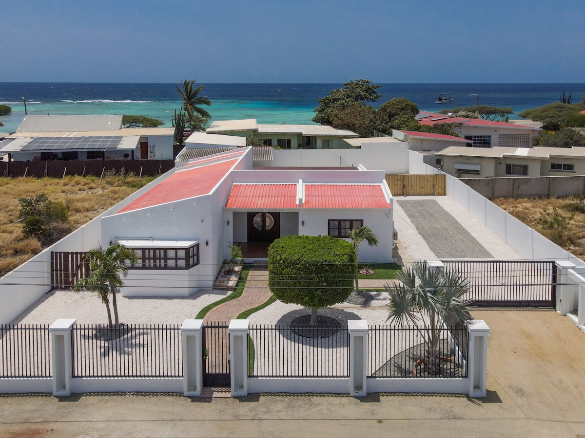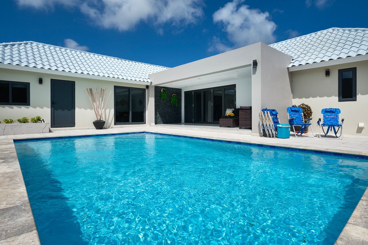 Palm-Biçdən bir neçə addımlıq məsafədə müasir, birmərtəbəli, şəxsi villa. Bu dəbli 4 yataq otaqlı evdə yüksək tavanlar, geniş açıq planlı dizayn və dincəlmək və ya əylənmək üçün mükəmməl olan böyük ayrıca hovuz terrası var. Hər yataq otağında ayrıca hamam otağı, Smart TV, xüsusi iş sahəsi, Aruba Aloe tualet ləvazimatları var. Beşik və uşaq üçün yüksək stul kimi ailə imkanları. Ev heyvanlarına uyğun, məxfilik üçün tam hasarlanmış və çimərliklərə, restoranlara, mağazalara və Arubanın ən yaxşı gecə həyatına piyada məsafədə - Palm-Biç bölgəsində ideal dincəlmə yeriniz.