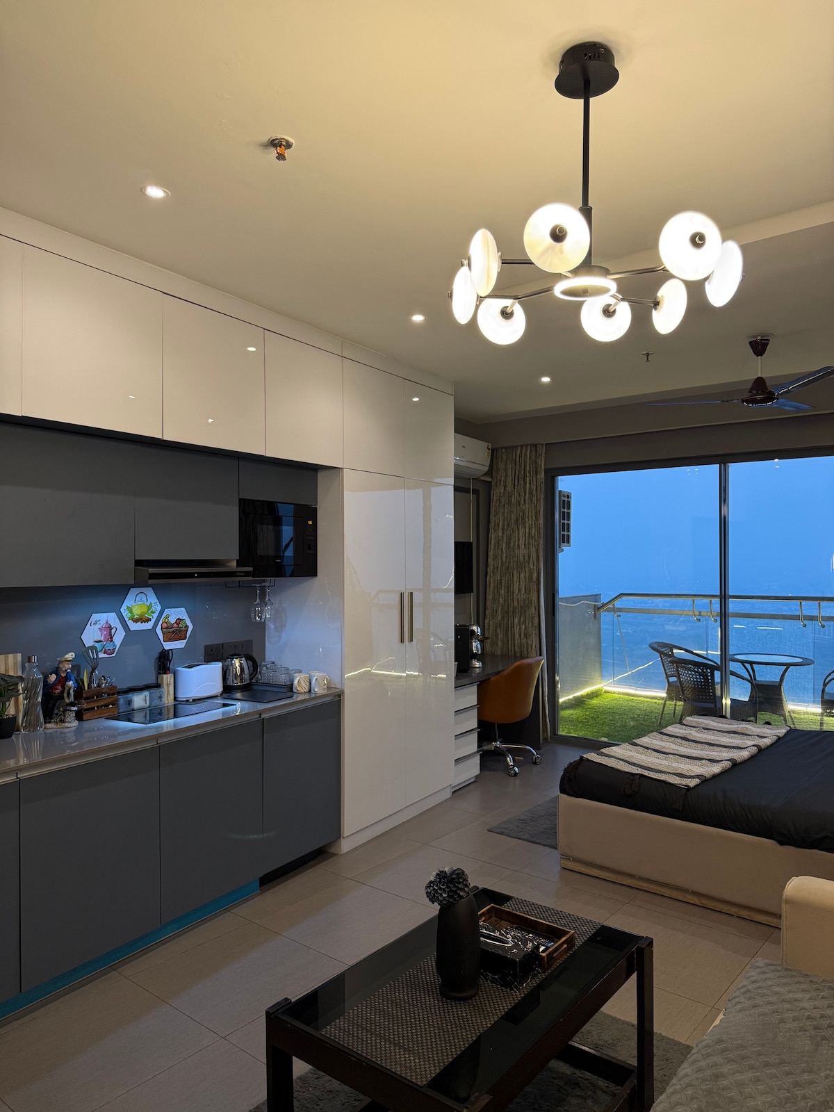A modern luxury 2BHK with 1 Luxurious bathroom with premium fittings—curated for refined comfort and seamless living.Calm tones,layered lighting, and thoughtful detailing shape an inviting atmosphere throughout.The layout flows naturally between living,dining, and resting areas,supported by a well-equipped kitchen,premium linens, and reliable connectivity.Clean lines, subtle finishes, and attentive upkeep reflect quiet sophistication,offering a polished stay defined by comfort,clarity, and ease.