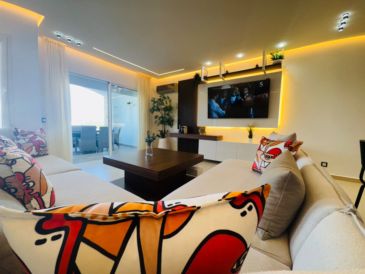 Gəlin və müasir və ənənəvi rahatlığın Tangierin füsunkarlığı ilə qarışdığı bu lüks mənzildə unikal təcrübədən zövq alın. Şəhərin ortasında yerləşən bu dəbli məkan sizə Tangier möcüzələrini araşdırmaq üçün ideal nəfis atmosfer təklif edir. Unudulmaz qonaqlamaya zəmanət verilir. Əsas görməli yerlərdən, restoranlardan və yerli mağazalardan qısa məsafədə yerləşən mənzil gərgin bir gündən sonra dincəlmək üçün mükəmməl bir yerdir.