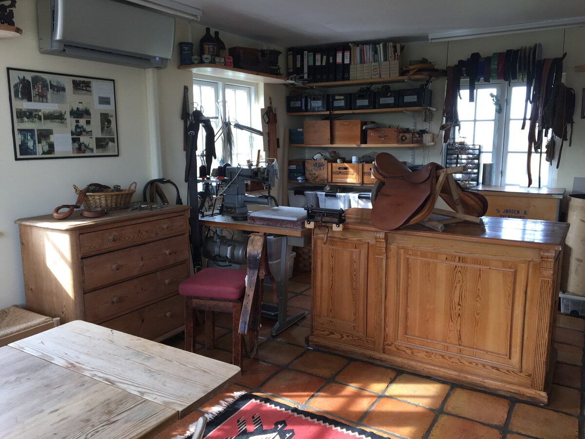 Hyggeligt studio i separat bygning med egen indgang, badeværelse med brus og opholdsrum med lille køkken, sovesofa og dobbeltseng (140 cm). Den idylliske ejendom ligger på landet, så bil er nødvendig. Her er mulighed for vandreture, ridning og mountainbiking i Fyns største skovområde. I nærområdet findes golf, fiskeri, strandliv og den charmerende havneby Faaborg. Attraktioner: Egeskov Slot, Øhavsstien, Svanninge Bakker, H.C. Andersens Hus i Odense, færger til øerne og havnebyen Svendborg.