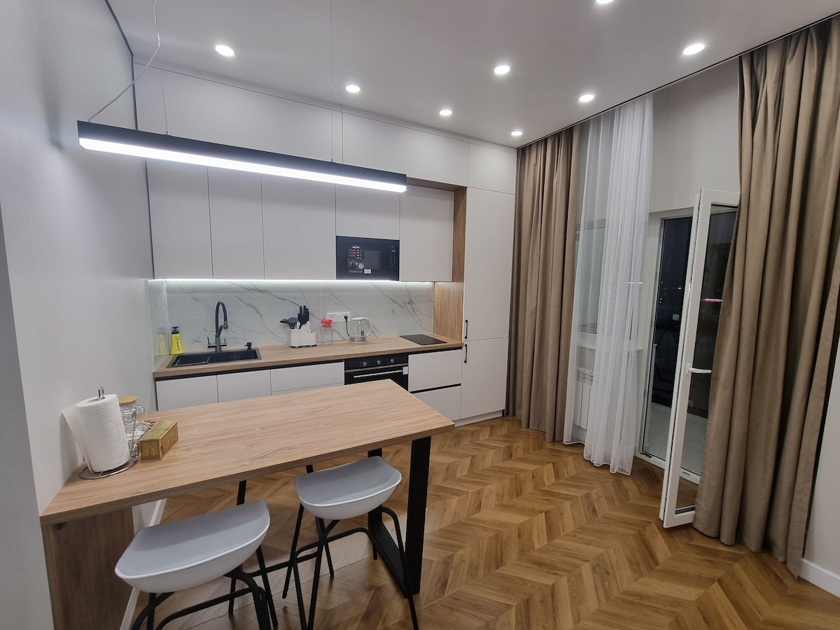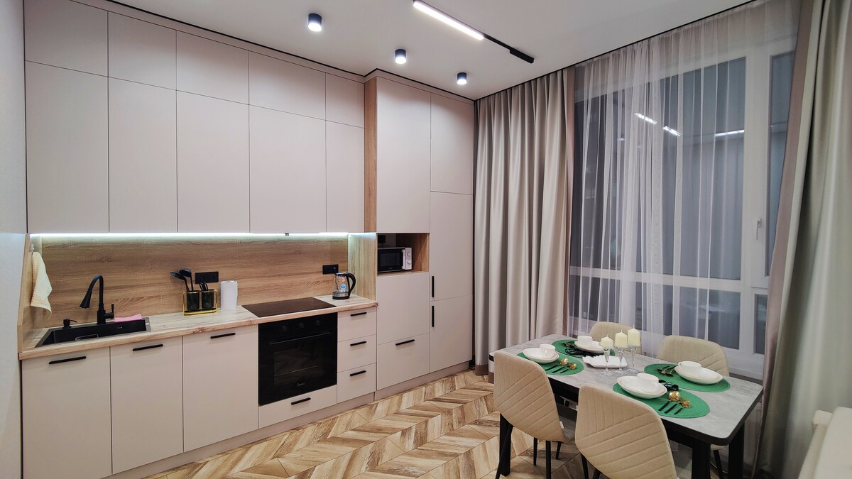 Astananın mərkəzində rahatlığı kəşf edin! Evdən uzaqdakı evinizə xoş gəlmişsiniz - şəhərin əsas görməli yerlərindən cəmi bir neçə dəqiqəlik məsafədə yerləşən, dəbli, 1 yataq otaqlı mənzil. Nələri bəyənəcəksiniz: • Təzə döşəkağıları olan rahat çarpayı • Yüksək sürətli Wi-Fi və Ağıllı TV • Tam təchiz olunmuş mətbəx + yemək sahəsi • Sakit mühit - botanika bağı və parklar • Mağazalara və ictimai nəqliyyata piyada məsafədə • Astana Arena Stadionuna, Barıs Arenaya və digər idman obyektlərinə asan giriş. Qonaqlamanızı bron edin və zövq alın!