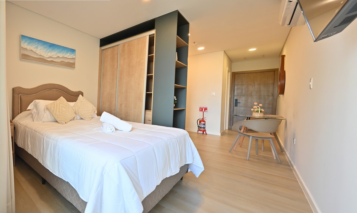 Müasir mənzil, super avadanlıqla təchiz olunmuş, eyvan, qril, 24-cü mərtəbədən panoramik mənzərə və əla xidmətlər: -swimming-pool - İş yoldaşlığı - Quinço - Kinoteatr - Öz-özünə qaldırılan parkinq (kiçik/orta avtomobil) - Təhlükəsizlik 24/7 Əla məkan: - Corporate Axis, Shopping del Sol və Paseo La Galería-dan 5 dəqiqəlik məsafədə. - Kostanera və Héroes del Chaco körpüsündən 10 dəqiqəlik məsafədə. - Silvio Pettirossi Beynəlxalq Hava Limanından 15 dəqiqəlik məsafədə. Wi-Fi daxildir · Smart TV · Premium Mattresses
