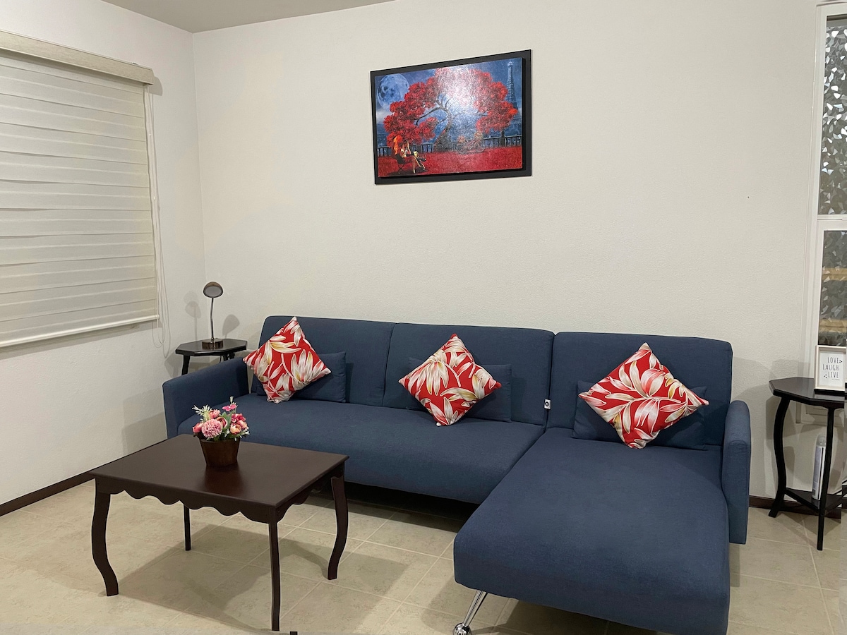 Relájate en este espacio tranquilo y privado a 5 min de Ciudad Salud IMSS, ISSSTE y hospitales, ideal para trabajadores del área de la salud y corporativos ubicado en zona exclusiva del desarrollo de Tres Marías, cercano a corporativos, club de golf tres Marías y a tan solo 15 a 20 minutos del centro de Morelia en automóvil. El departamento cuenta con dos habitaciones y dos baños completos, cocina y sala de estar. Sean bienvenidos.