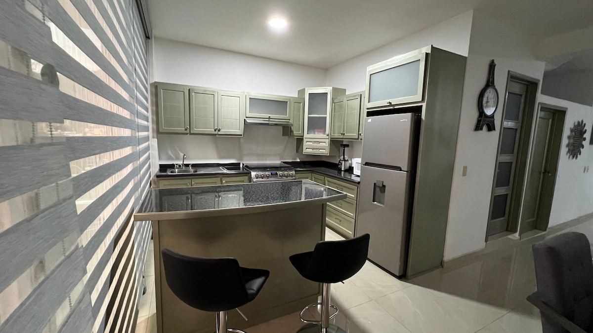 Açarsız giriş sistemi ilə lüks tam təchiz olunmuş süita. Burada aşağıdakı imkanlar var: Əyləncə: -İnternet -Smart TV (Apple TV) -Netflix, Disney+ və HBOmax -Ev Teatrı - +150"ekran - Bose Sound Yataq otağı: -Keçid ölçüsü olan çarpayı - Şəxsi əşyalar üçün mebel - Kondisioner Vanna otağı: -Silent Ekstraktor - Təmiz qüllələr Şappuo -Kondisioner -Likid Bədən Sabunu -Hot Water Mətbəx: -Quru tam dolu -Qeyri-adi fasilələr -Mikrodalğalı soba -Refrigerator Eynək və fincan