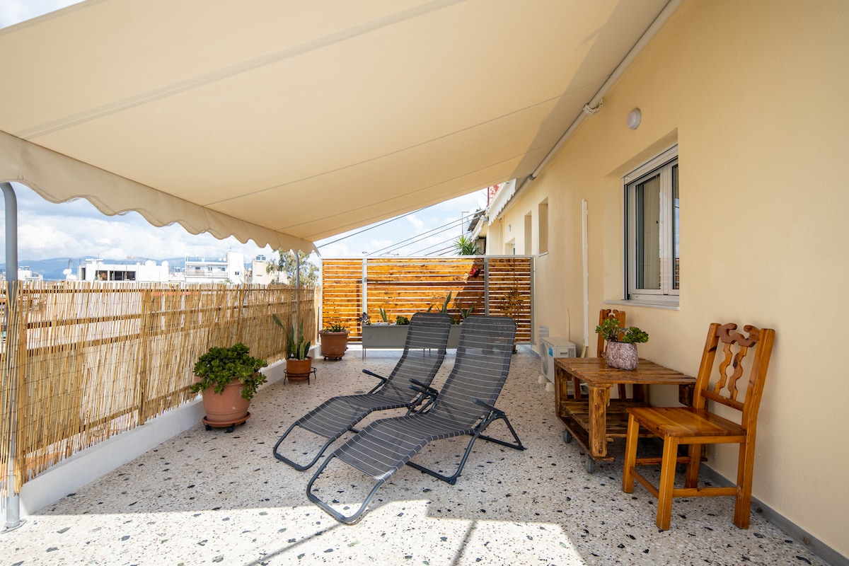 Feel Athenian For A While in a totally renovated, super-cozy rooftop studio with large private terrace garden with Acropolis view. The studio is based on a mini house concept and is strategically located in a safe and central Athenian neighborhood, with very easy, fast and direct access to main attractions, port, airport and railway station. Local street markets, restaurants, bars, cafeterias, pharmacies , laundry service and supermarkets are a few steps from the studio.