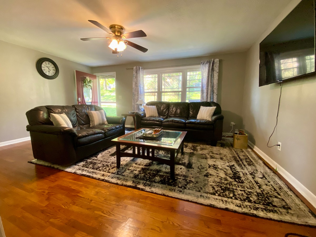 Peterburqun mərkəzində, İllinoys ştatının mərkəzindəki məhəllə dağ yamacında yerləşən rahat 2 otaqlı, 1 vanna otağı olan "The Petersburg Place" otelində qonaqlamanızdan zövq alın! Evdə tək səviyyəli evə daxil olmaq üçün yalnız üç addım, açarsız giriş, bir neçə nəqliyyat vasitəsini və ya qayığı park etmək üçün kifayət qədər yer, göyərtəsi olan hasarlanmış arxa həyət, yemək bişirmə ləvazimatları olan tam mətbəx, 55" TV (Amazon Firestick) və Wi-Fi var.