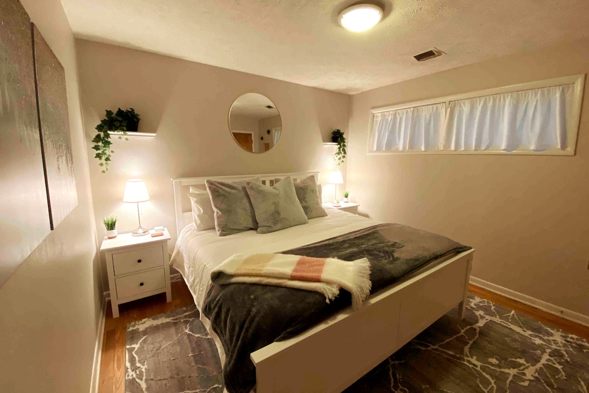 Çoxlu yaşayış sahəsi olan böyük 3 yataq otaqlı mənzil. 3 ayrı yataq otağı qonaqlar üçün məxfilik təmin edir. Əsas yataq otağında həm masaj imkanları, həm də telefon doldurma portları olan TƏNZİMLƏNƏN King ölçülü çarpayı var. Mətbəx yemək qabları, qazan və tavalar, gümüş qablar və qablarla tam təmin olunub. Mənzilin 3 avtomobil üçün kifayət qədər yeri olan küçə parkinqindən kənara çıxan böyük arxa göyərtəsi var. Uptown Afina və Ohayo Universitetindən 10 dəqiqəlik məsafədə yerləşir. Hokinq-Hillz qısa 25 dəq. mənzərəli yoldur.