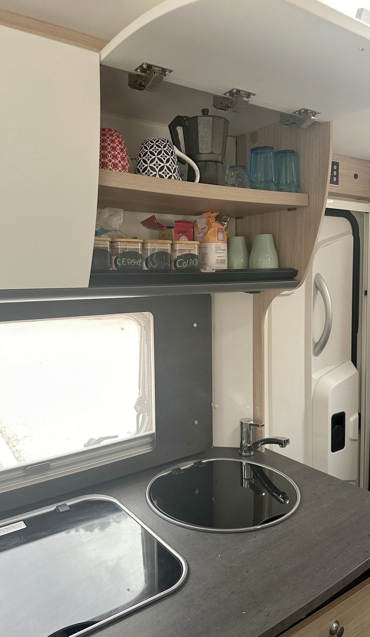 La bonita caravana consta de saloncito para cuatro personas , que también son dos cama individuales, cama de matrimonio de 150cm, aseo con ducha, cocina con todos los utensilios y porche individual. Espacio tranquilo en el que compartir buenos momentos. Sitio perfecto para tus escapadas al palmar y disfrutar del surf. El espacio se comparte con otras caravanas que puedes encontrar también en Airbnb como Rincón Tarifa o Rincón Oceano.