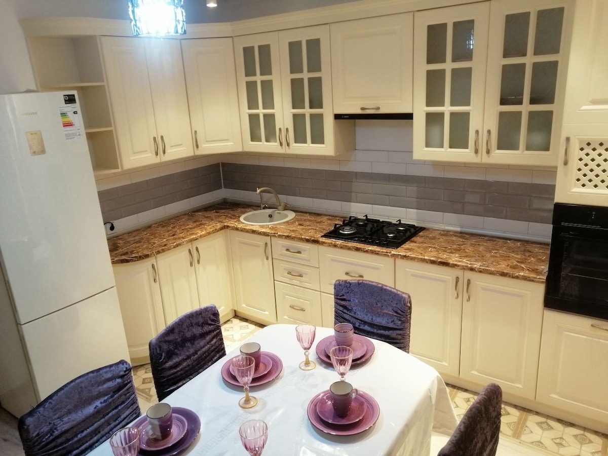 Laqun Residence yaşayış kompleksində mətbəx studiyası olan 2 yataq otaqlı mənzil çox inkişaf etmiş infrastruktura malik köhnə şəhər mərkəzində yerləşir. Yaşayış kompleksi 2020-ci ildə istifadəyə verilib. Yeni mebeli, müasir təmiri, bütün lazımi avadanlıqları olan mənzillər həm qısa, həm də uzun müddətli rahat qonaqlama üçün uyğundur. Qonaqlamanız üçün hər şey var. Ciddi siqaret çəkməmək 🚫 Axşam saat 10-dan sonra səs-küy olmur.