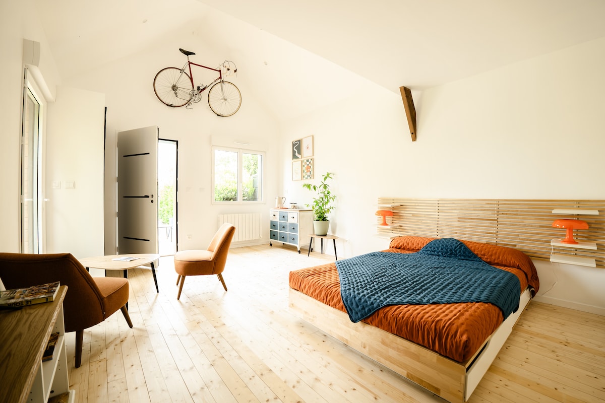 Caen qapılarında və dənizdən 15 dəqiqəlik məsafədə isti və sakit bir yer olan Suite Entre Terre & Mer-ə xoş gəlmisiniz. 150-179 sm ölçülü çarpayı, yemək sahəsi, duş otağı, tualet, qonaq otağı ilə limitsiz girişi olan örtülü Spa sahəsi və gözdən yayınmayan terras ilə təchiz edilmiş yataq otağı olan nömrə Mövcuddur: Wi-Fi tv, saxlama, qəhvə maşını, çaydan, toster, mikrodalğalı soba, soyuducu, qablar. Səhər yeməyi daxildir