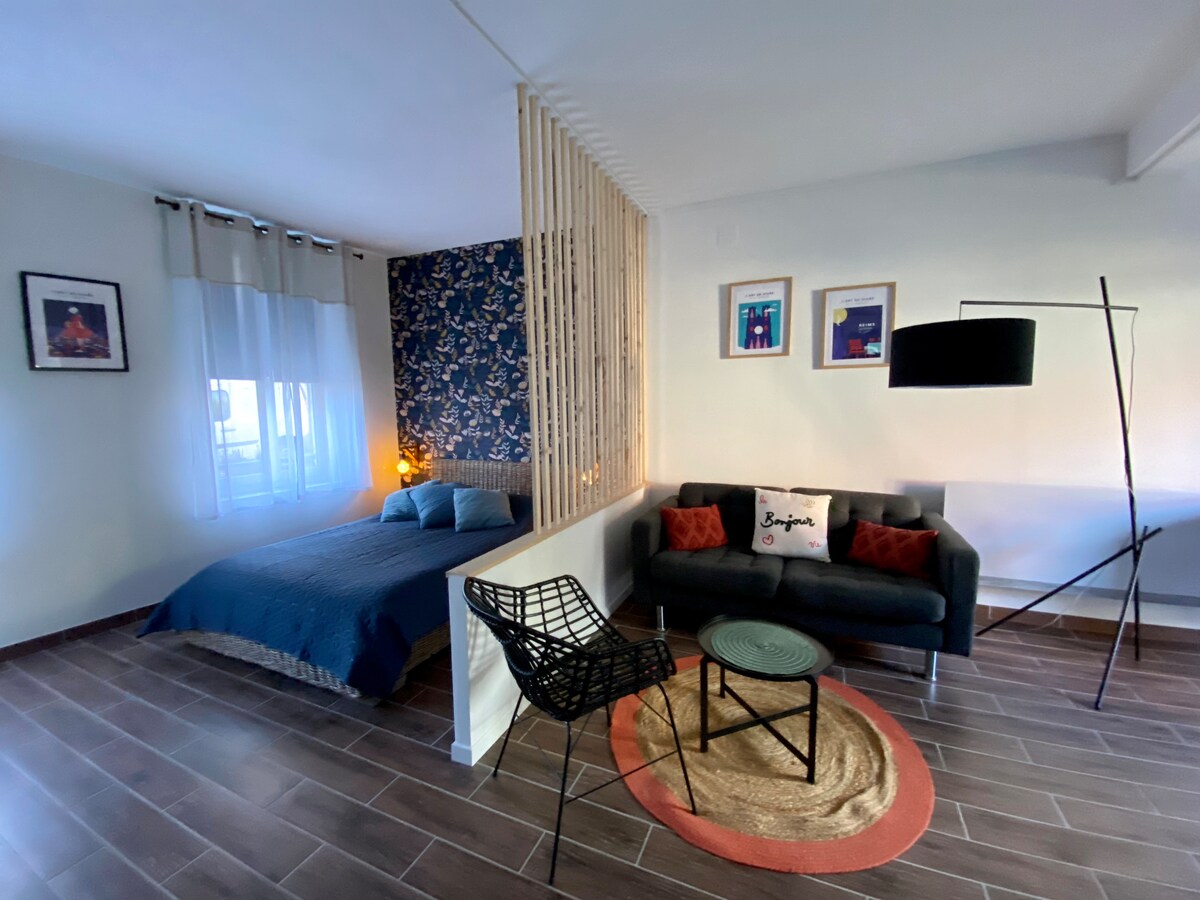 Çantalarınızı Reimsin mərkəzində yerləşən, memar tərəfindən tamamilə yenilənmiş, bütün rahatlıqları olan bu böyük, şık, yüksək səviyyəli studiya mənzilinə qoyun. Hər şey piyada məsafədədir: mərkəzi qatar stansiyası, Erlon Meydanı, Bulenqren, restoranlar və mağazalar cəmi bir neçə metr məsafədədir. Nadir bir mövqe və qayğısız qonaqlama üçün zərif, rahat bir mühit. ⚠️ Mənzildə velosipedlərə icazə verilmir.