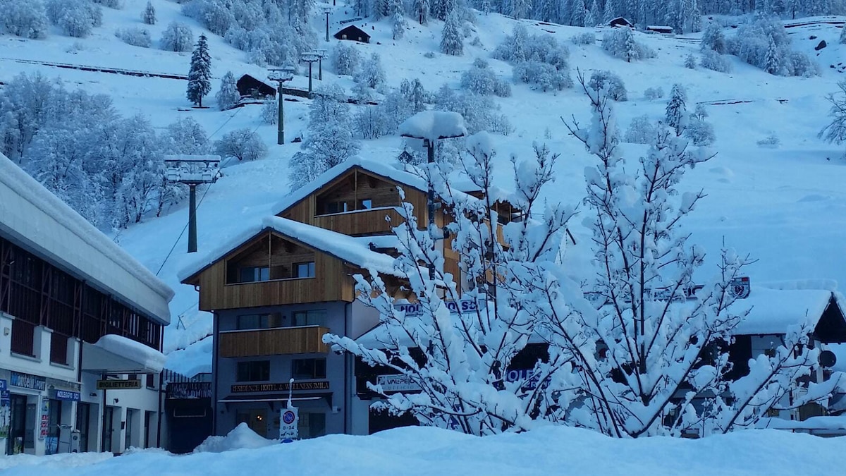 Domina Parco Dello Stelvio xizək yamacları yaxınlığında Cogolo di Pejo (Trento) şəhərində 4 ulduzlu oteldir. MAKSİMUM 6 nəfər üçün aşağıdakı kimi yerləşdirə biləcəyiniz mənzilim var: - İki nəfərlik çarpayısı olan yataq otağı - 2 nəfərlik çarpayısı olan otaq - 2 nəfərlik divan çarpayısı olan qonaq otağı - Duşlu vanna otağı - Mətbəx - Balkon - Wi-Fi və pulsuz parkinq - SPA (üzgüçülük hovuzu, sauna və s.) və səhər yeməyi, nahar və şam yeməyi üçün restoran üçün ödəniş imkanı. Gianmarco-dan yaxşı istirahət