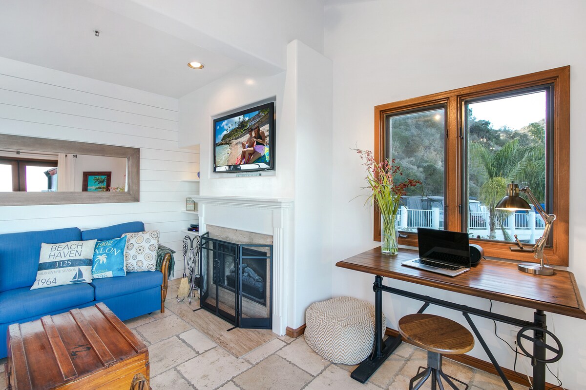 Katalinanın nüfuzlu Hamilton Kove-də yeni lüks okean sahili 1BR villası olan Vista Blankaya xoş gəlmisiniz. Nəfəskəsici panoramik mənzərələrə baxın, şəxsi terrasınızda dincəlin və pulsuz 4 nəfərlik qolf maşınınızda Avalonu araşdırın. Bu dəbli tətilə kral yataq otağı, tam mətbəx, Ağıllı TV-lər, çimərlik ləvazimatları və kurort hovuzu, tennis kortu, ayrıca çimərlik və s. daxildir. Vista Blanka Los-Ancelesdən 26 mil məsafədə yerləşən mükəmməl ada istirahət yerinizdir.