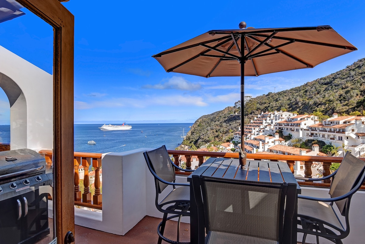*Avalon* Okean Mənzərəsi* Split səviyyəli * Penthouse * B45 * Santa Katalinanın qəribə kiçik Avalon şəhərinin damlarından qısa bir məsafədə yerləşən bu Tri-Level Penthouse Suite-dir - Bahia Vista Condos--Nəfəskəsici liman, şəhər, dağ yamacları və bütün otaq və eyvanlardan hovuz mənzərələri... daim Santa Katalinanın gözəlliyini və 'Island' həyat tərzində ortaya çıxan 'vəziyyəti ' xatırladan bir xatırlatma. * Pulsuz qolf maşını daxildir.