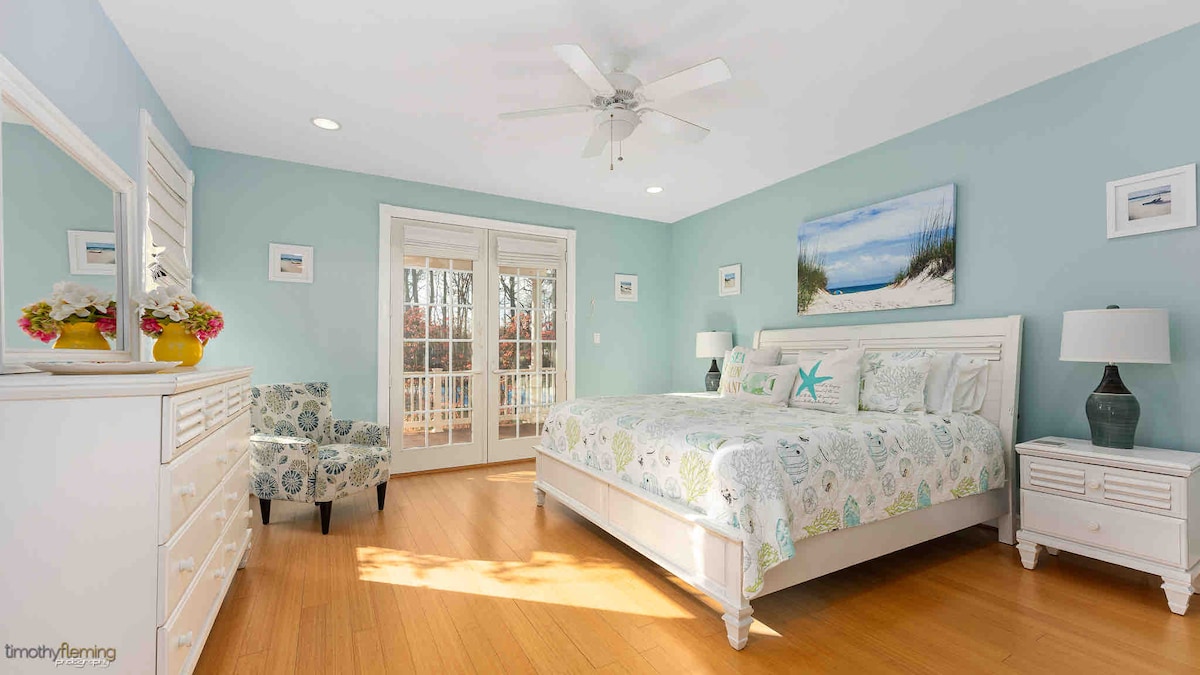 The Loft at Haven is a private 2nd story studio apartment with a full bath and kitchenette, nestled on a peaceful, family-owned 40-acre lakeside property just minutes from Stone Harbor and Cape May. Enjoy expansive lake and forest views from your private deck, large windows that flood the space with natural light, and direct access to hiking trails, hammocks, county bike path, and a crystal clear lake with complimentary water sports equipment.