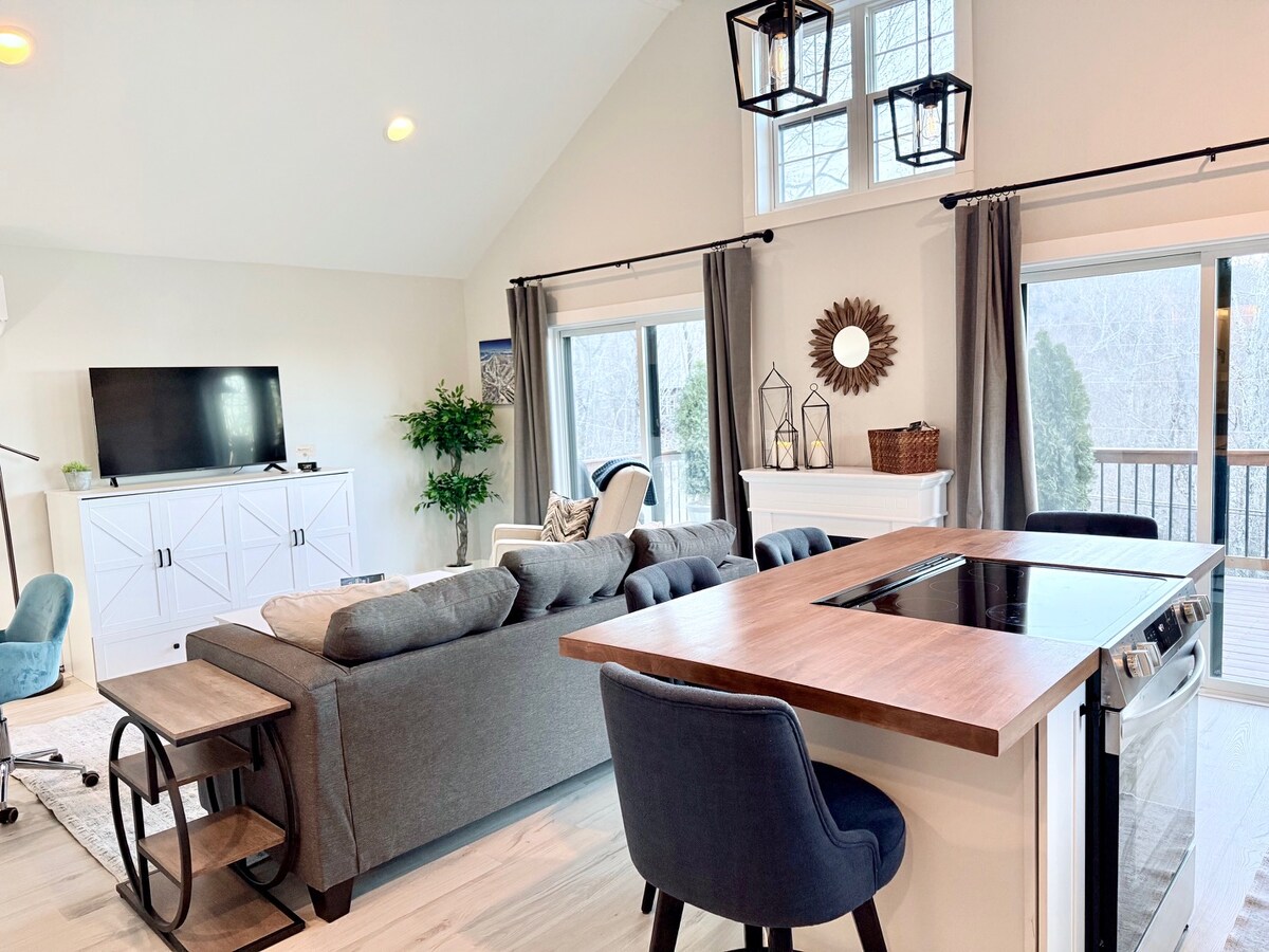 Coffee or cocktails fireside on the deck, walk to lifts & ski village, peaceful evenings. Enjoy year-round access to Beech Mountain Resort, hiking trails, dining, pubs, Fred’s Mercantile, sledding hill. We chose this location for our home & guest house (built 2024) to support an active lifestyle w/out sitting in ski traffic & parking hassles. Ideal for walkers, we’re adjacent to the main road winding through Beech Mtn. Lift #1 is 1/3 mile away; Fred’s, sledding hill & town are about 1/2 mile.