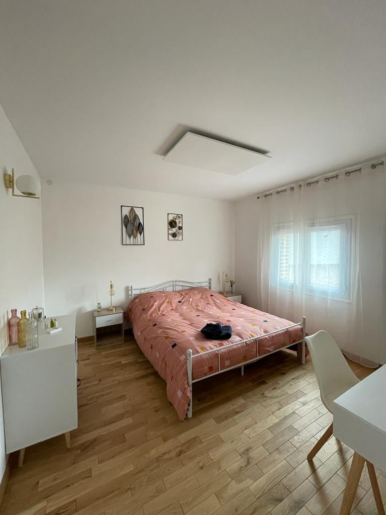 Qəşəng və mərkəzi qonaqlamadan zövq alın. Kənd evi: Buxarı (taxta ilə təmin edilmiş) 1 qonaq otağı, tam təchiz olunmuş mətbəx (qabyuyan maşın, mikrodalğalı soba, çaydan, toster və s.), günəşli veranda, 1 yataq otağı 160 x 200, 2 çarpayılı 1 yataq otağı 90 x 200 (çətir çarpayısı mümkündür/körpə stulu), vanna otağı (vanna), ayrıca tualet, Wi-Fi, masa sahəsi və uşaq sahəsi. Bu ev yenicə tamamilə təmir olunub. Çox sakitdir. Ətrafda çoxlu fəaliyyətlər (atçılıq, yürüyüş, velosiped, müxtəlif mağazalar).