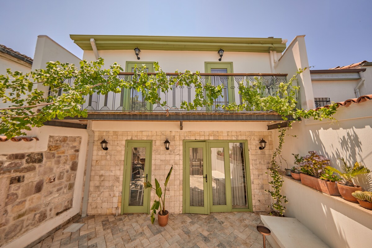 Ayvalıkın dəniz, zeytun və tarix qoxan dar küçələrinin ən diqqət çəkən mövqeyində, tamamilə orijinalına uyğun dizayn edilmiş 135 illik bu evin tarixi izləri ilə zövq alın. Şəhər mərkəzinə, restoranlara, Egey dənizinin qədim mədəniyyətinin gizləndiyi Cümə axşamı bazarına, qayıq turlarına, Cunda bərəsinə, muzeylərə və ictimai nəqliyyat vasitələrinə piyada məsafəsindədir (5 dəqiqə). Sizə tarixdə gəzməyi deyil, yaşamağı vəd edirik.