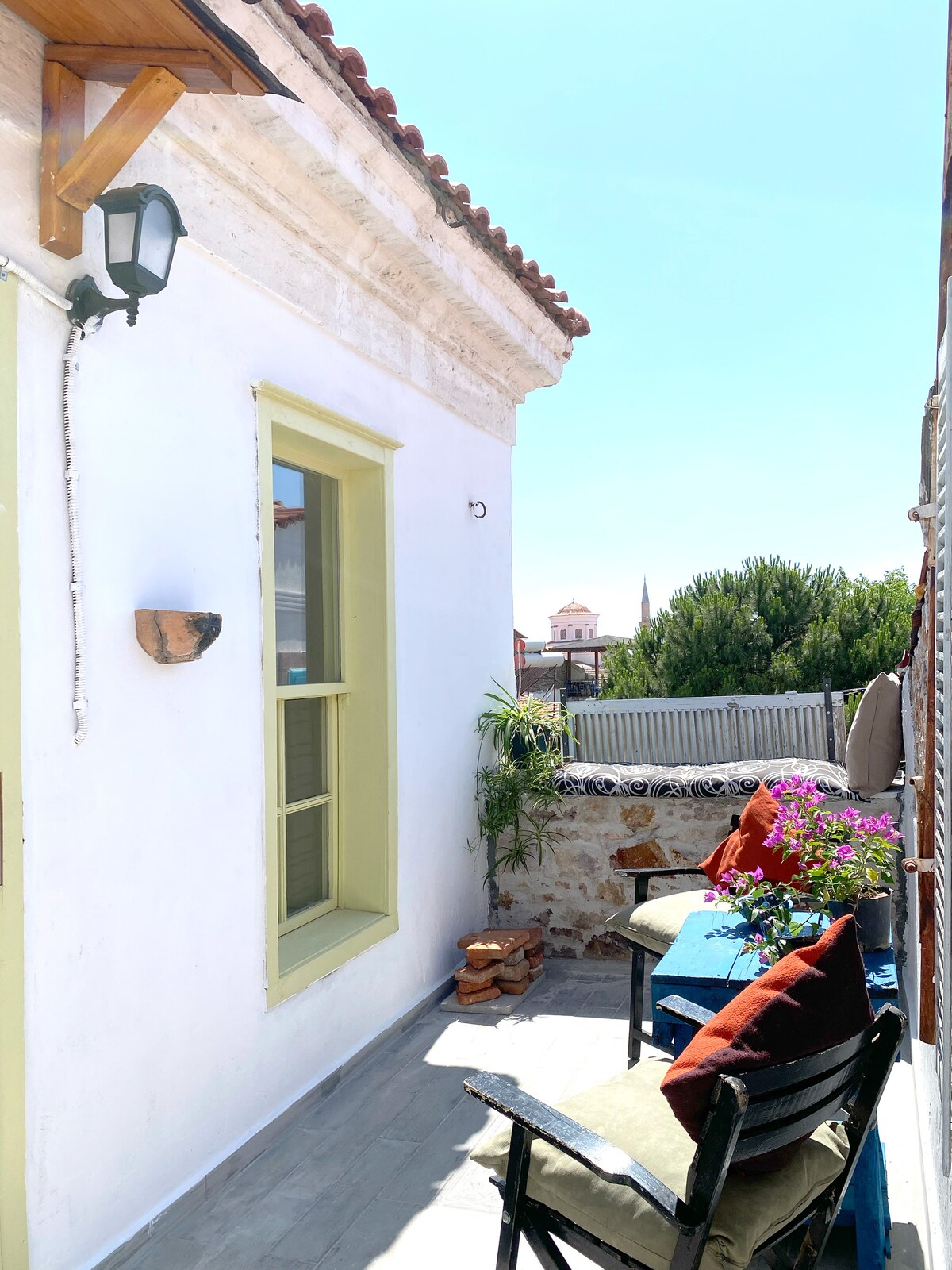 Evimiz Ayvalikin mərkəzində qorunan ərazidə son dərəcə rahat bir evdir. Əntiq əşyalar və müasir əşyaları bir araya gətirməklə dəbli, rahat məkan yaradılır. Bağçadan istifadə qonaqlarımız üçün eksklüzivdir. Bağda çay yeməyi və divan dəsti var. Evdə hər cür mətbəx ləvazimatı var. Zövqlə yemək bişirə və ya bazar , restoran və əyləncə məkanlarına gedə, şəhərin tarixi fakturasını araşdıra və gözəl çimərliklərində dənizdən zövq ala bilərsiniz.