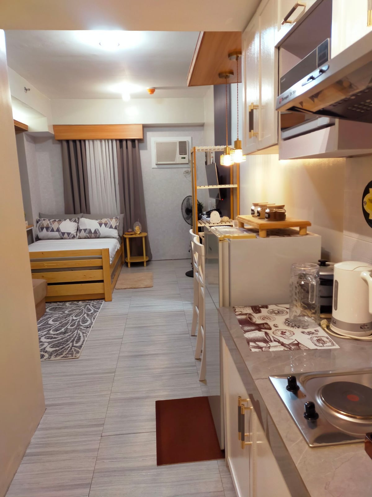Bu qəşəng və müasir 1 yataq otaqlı kondominium funksionallığın, üslubun və ən vacibi rahatlığın mükəmməl qarışığını təklif edir. Paranaque şəhərinin mərkəzində yerləşən bu düşünülmüş məkan yolda olan şəxslər və ya rahat, səmimi və dəbdəbəli yaşayış təcrübəsi axtaran cütlüklər üçün idealdır. Notre Reve kimi deyil, Beynəlxalq Hava Limanı və Mərkəzi Biznes Rayonlarını atan bir daşdır. Minimum 7 gecəlik qonaqlama, hava limanından VƏ hava limanına PULSUZ GEDİŞ İMKANI olan xarici ÖLKƏLƏRDƏN gələn qonaqlar️