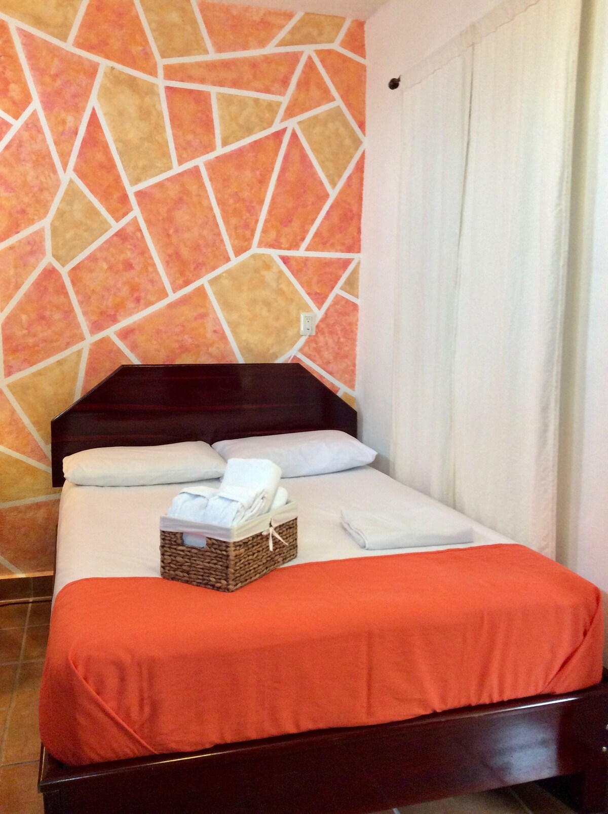 Recently remodeled room just behind University of Quintana Roo. Walking distance to Chetumal Bay and Convetion center. Plaza Bahia/ Walmart 3 min away by car. Calderitas Town and ECOSUR nearby. This 3 rd floor room has 1 double bed, Inverter Air Conditioning, en suite bathroom & shower with hot & cold water. 1 st floor common areas: fully equipped kitchen for storing food & cooking, dinner room, living room, back garden. Breakfast included. Bay parking lot outside. ¡Ya facturamos! Pregunte aquí.