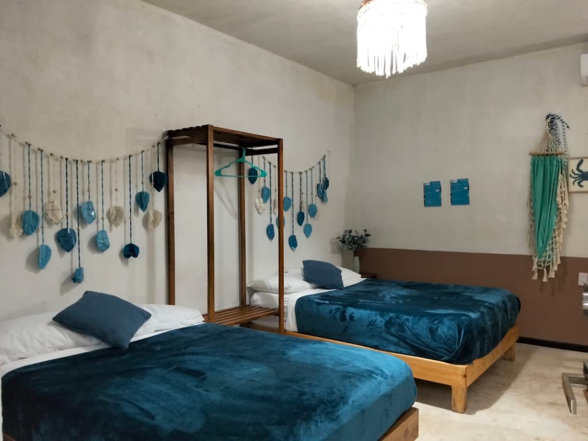 Disfruta de una estancia relajante en esta cómoda y luminosa habitación ya sea para una escapada romántica o unas vacaciones relajadas. Ubicada a solo 10 minutos de la playa, Cuenta con dos camas confortables, aire acondicionado y Wi-Fi rápido. El espacio ofrece un ambiente tranquilo, perfecto para desconectar después de un día de playa. Tendrás acceso a baño privado, áreas comunes limpias y bien cuidadas, y recomendaciones locales para disfrutar de restaurantes, paseos y actividades cercanas.