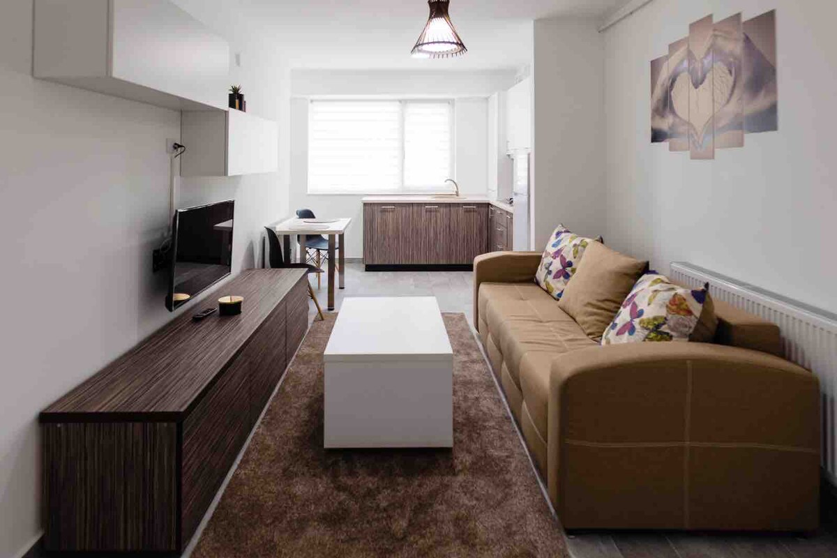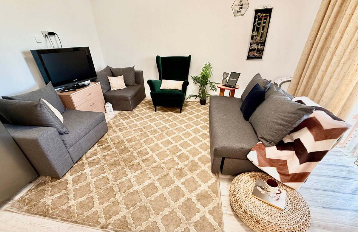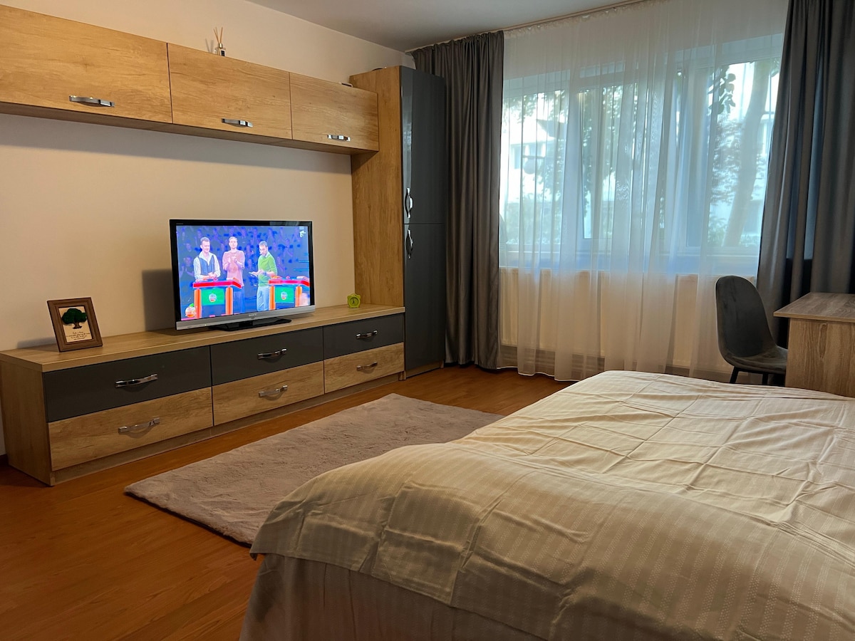 Step into this charming and peaceful apartment, perfectly situated just a 10-second walk from Bacău’s main square. Its central location allows you to enjoy everything the city has to offer—cafés, restaurants, shops, and cultural spots—while still providing a peaceful retreat from the hustle and bustle. The apartment’s calm and serene atmosphere makes it an ideal choice for couples, solo travelers or small groups seeking comfort and convenience.