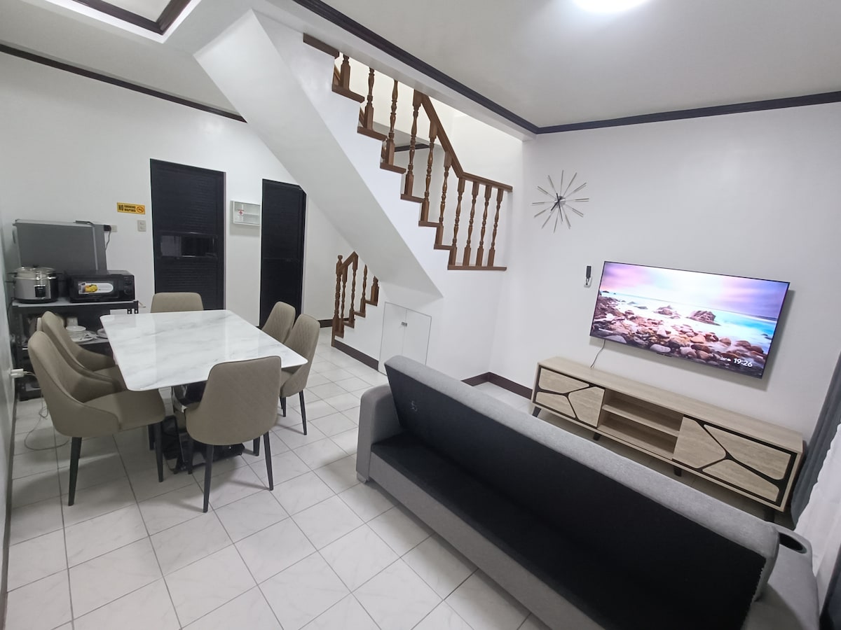 Welcome to Our Luxurious & Cozy Townhouse with Terrace and Free Street Parking Experience the perfect blend of comfort and style in this lovely home. All bedrooms feature beautiful narra parquet flooring, adding warmth and elegance to every space, while the tiled living area offers a clean and practical touch. Relax in the spacious living area equipped with a 2.5 HP split-type air conditioner, ensuring a cool and comfortable stay throughout your visit.