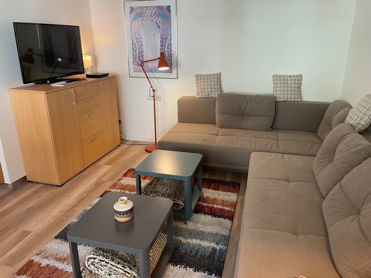 Bad Hofgastein-də 100 kvadrat metrlik rahat mənzil. Avtobusla spa və xizək sahəsinə baxış á vis. Mətbəx, yemək otağı və qonaq otağı, 2 yataq otağı, ayrıca hamam/duş və tualet - YENİ TƏMİR olunub. Qabyuyan maşın, soba, 4 hotplates, soyuducu, qəhvə maşını olan mətbəx. Divan-çarpayı və televizoru olan qonaq otağı. W-Lan
