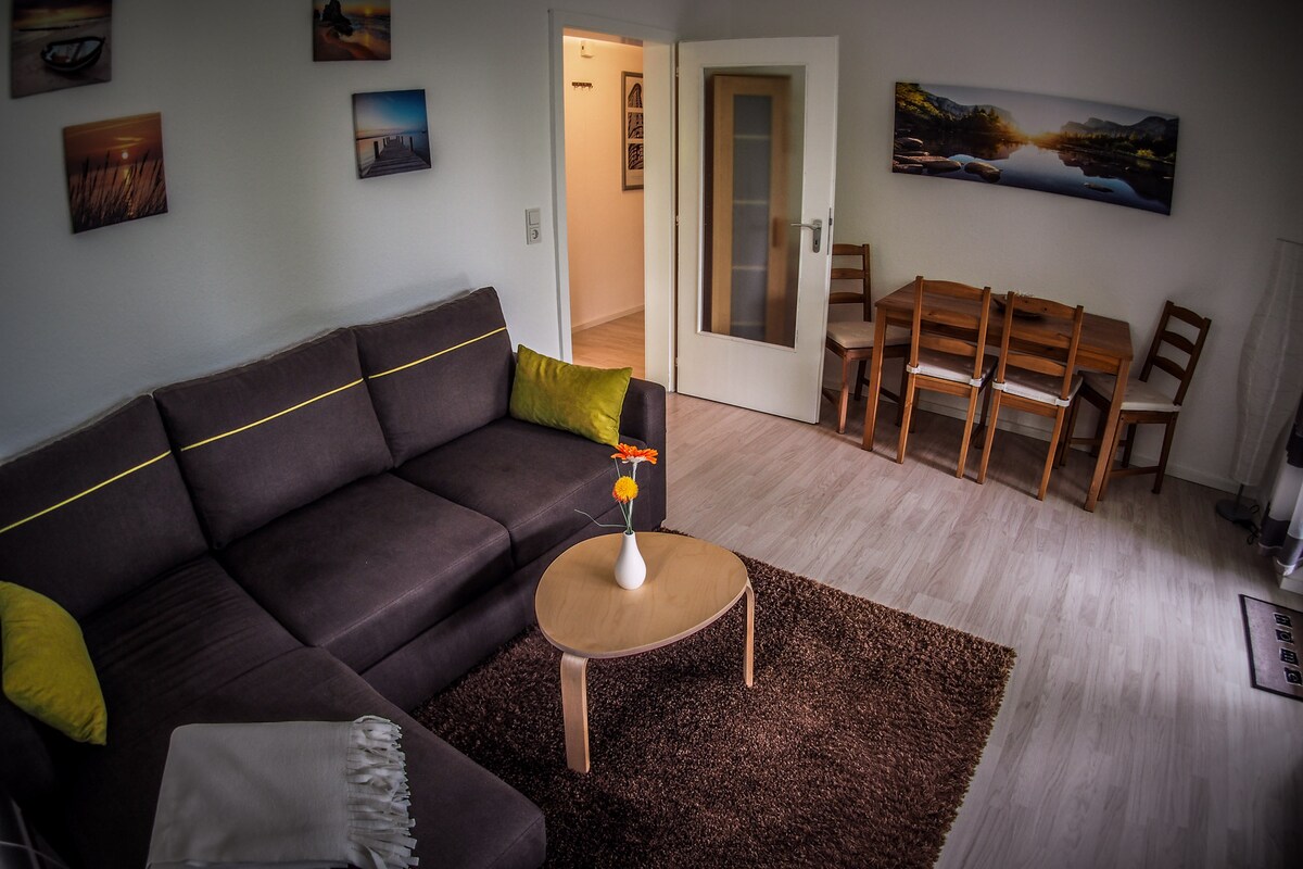 Zentral gelegen - du findest in unmittelbarer Nähe eine Bäckerei und Café, REWE, Netto uvm. Eine Bushaltestelle befindet sich ca 100 m entfernt. Ob Sie ein paar erholsame Tage verbringen möchten, beruflich unterwegs sind, an einer Veranstaltung teilnehmen oder als Monteur eine praktische Unterkunft suchen – bei uns sind Sie das ganze Jahr über herzlich willkommen. Die Ferienwohnung ist nicht barrierefrei, bietet aber mit ihrer Ausstattung und dem wohnlichen Ambiente einen angenehmen Rückzugsort.