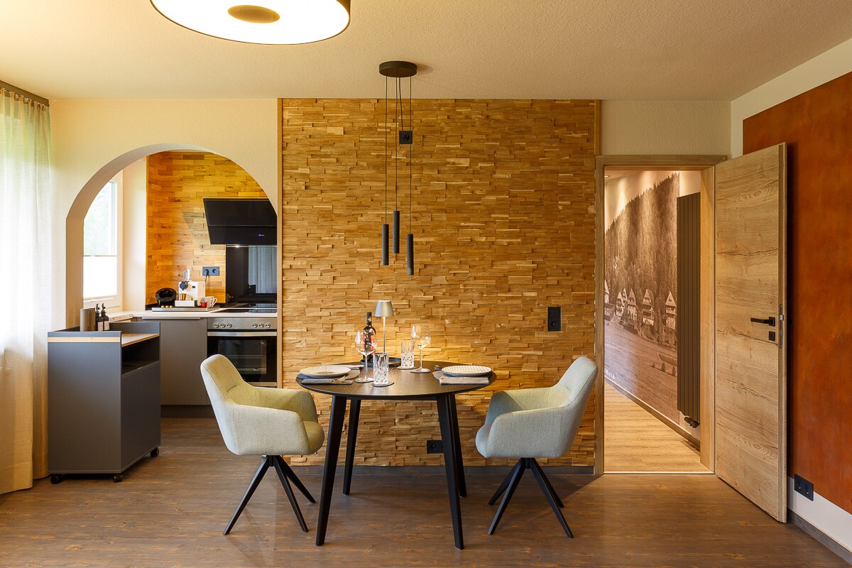 Heyrətamiz və unikal mənzilimiz sizə özünüzü yaxşı hiss etmək və istirahət etmək üçün istirahət təklif edir. Qəşəng dizayn və sevgi dolu detallar Qara Meşədə təbiət, ənənə və ev sevgisinin olduğu rahat atmosfer yaradır. Gölün və meşənin fantastik mənzərəsi gündəlik həyatı unutdurur.