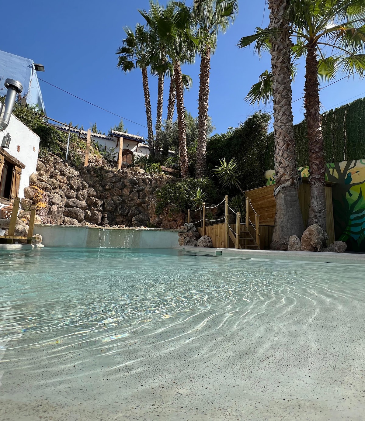 Bu, Andalusiyanın mərkəzində, əsas icma paytaxtlarından bir saatlıq məsafədə, Piscina de Agua Salada tipli Playa-da inşa edilmiş çox xüsusi füsunkarlığı olan kənd evidir. Böyük təbii daş şəlalənin qarşısında. Burada ulduzlu gecələrdə istirahət edə biləcəyiniz açıq havada yerləşən Cakuzi de Agua Kaliente ilə möhtəşəm Spa sahəsi var. Şəlalənin musiqiləri və quşlar arasında dincəlmək üçün palma ağacları və guşələr arasında çərçivələnib.