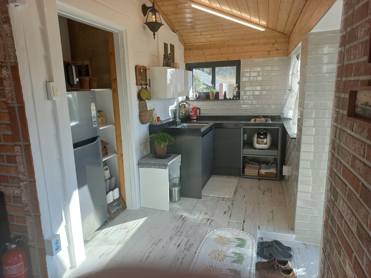 Bu, sakit kənddə yeni tikilmiş 2 mərtəbəli evdir. Birinci mərtəbədə valideynlərim yaşayır, ikinci mərtəbədə isə loft üslublu ayrıca yaşayış yeri var. Yaşayış yerinə çöl pilləkənləri ilə daxil ola bilərsiniz, beləliklə, təmassız şəkildə giriş edə və barbekü, həyət, kran sahəsi, terras və s.-dən sərbəst istifadə edə bilərsiniz. Valideynlərim ərazidədir, ona görə də hər hansı narahatlıq və ya sorğuya dərhal cavab verə bilərəm. Kənddə olmasına baxmayaraq, yaxınlıqdakı restoranların, kafelərin, imkanların və turistik yerlərin əksəriyyətinə avtomobillə 20 dəqiqə ərzində çatmaq olar.(Sokço Çimərliyi 15 dəqiqə, Mulçi Çimərliyi 6 dəqiqə, Hanaro Mart 6 dəqiqə, Sokço E-Mart 15 dəqiqə, Seoraksan Kabel Avtomobili 15 dəqiqə, Naksan Məbədi 10 dəqiqə və s.) Barbekü və ya qazandan istifadə edərkən əlavə 30 000 von ödənilir. Kömür, odun, məşəl və daş hazırdır, sadəcə yemək gətirməyiniz kifayətdir. Terrasda masa da var, odur ki, sadəcə yemək istəyirsinizsə, ocaq və qriddən istifadə edə bilərsiniz. Birinci mərtəbədə smart TV, ikinci mərtəbədə mini proyektor, Netflix, TV və avtomatik giriş var.
