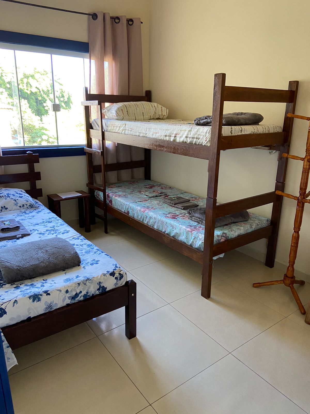 Em sua estadia você terá acesso privativo ao quarto triplo que é composto por 1 cama de casal e 1 cama de solteiro devidamente dispostas com roupas de cama limpas, toalhas de banho e rosto e sabonete individual.