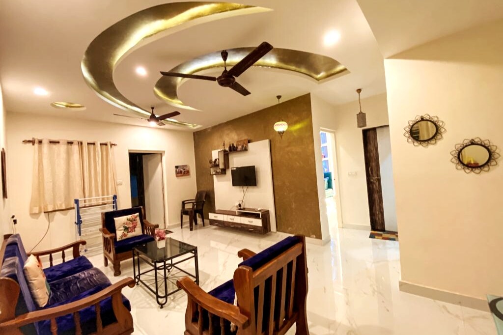 Müasir Boho Mənzili | Şimali Qoa çimərliklərindən bir neçə dəqiqəlik məsafədə. Birinci mərtəbədə yerləşən, cütlüklər, dostlar və ya kiçik ailələr üçün mükəmməl olan, tam mebellə təchiz olunmuş, rahat bir 1BHK istirahət məkanı. Əsas xüsusiyyətlər: - İsti ab-havası olan dəbli boho interyer - Rahatlıq üçün yataq və qonaq otağında kondisioner - Ağıllı TV + Yüksək sürətli Wi-Fi - RO suyu, aşpaz, soyuducu və paltaryuyan maşınla təchiz olunmuş mətbəx - Paylaşılan üzgüçülük hovuzu (9 AM-6 PM | üzgüçülük geyimləri məcburidir - Gündə adambaşına 200 INR məbləğində yerli idman zalı mövcuddur - 24/7 təhlükəsizlik - Pulsuz Parkinq