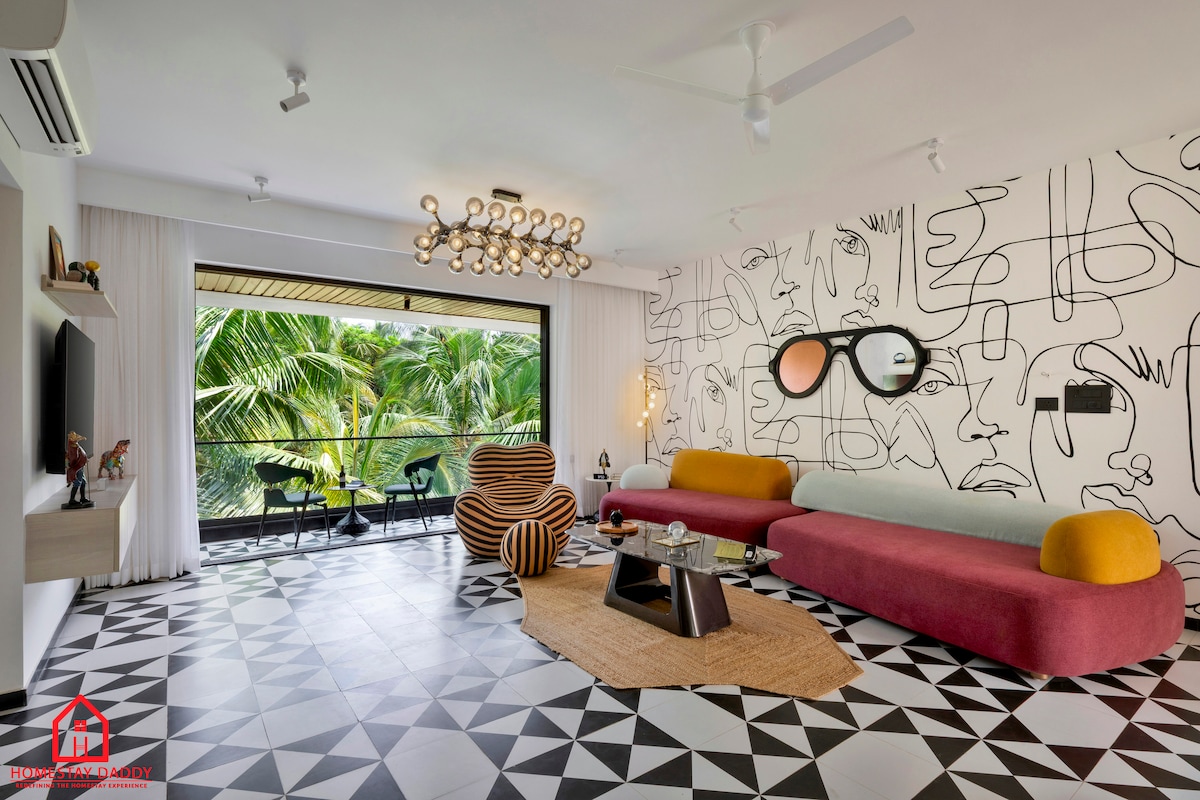 Müasir Boho Mənzil | Şimali Qoanın çimərliklərindən dəqiqələr. Cütlüklər, dostlar və ya kiçik ailələr üçün mükəmməl rahat, tam təchiz edilmiş 1BHK istirahət yeri. Seçilən cəhətlər: - İsti ab-havası olan dəbli boho interyer - Rahatlıq üçün yataq və qonaq otağında kondisioner - Ağıllı TV + Yüksək sürətli Wi-Fi - RO suyu, aşpaz, soyuducu və paltaryuyan maşınla təchiz olunmuş mətbəx - Paylaşılan üzgüçülük hovuzu (9 AM-6 PM | üzgüçülük geyimləri məcburidir - Yerində ödənişli obyekt kimi mövcud olan idman zalı - Ürək rahatlığı üçün 24/7 təhlükəsizlik - Pulsuz Parkinq
